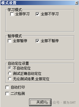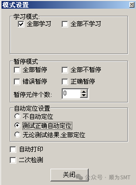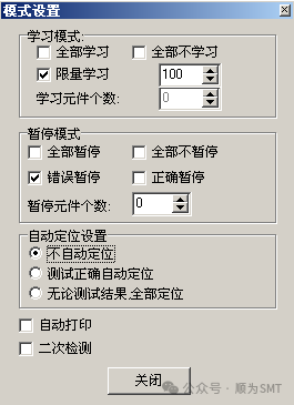 4) 對個別元件或標準學習或暫停??可以對個別元件或誤判多的標準單獨設置學習或暫停,用來特別調試。用此方法時要注意“模式設置”中的“全部不學習”沒有選擇。