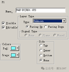 3.選擇GERBER中的層別,Type : Silkscreen(絲印層),Soldermask(阻焊盤層),Solderpaste(焊盤層),Side :選擇正面還是背面。Type和Side兩個一定要對應。