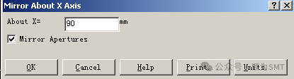4.GERBER導入后,確認層是否為鏡像,如果鏡像,點擊“*”全選,點擊“”將About X中輸入“90”。