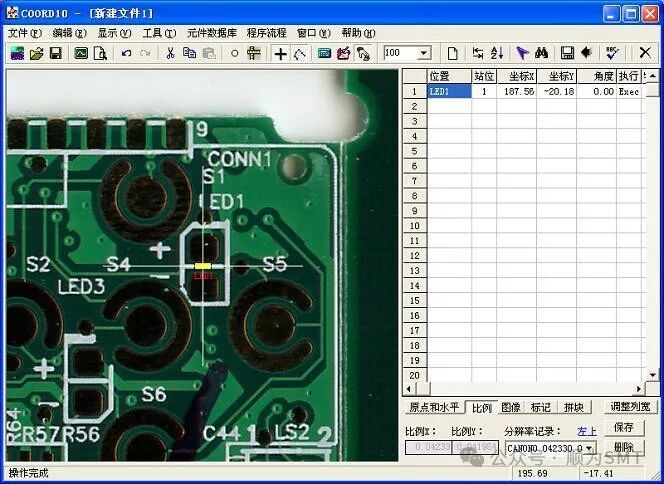 直接用PCB板通過掃描儀掃描圖片,從圖片上獲取坐標數據,包括程式的相對原點、MARK,拼塊數據等。 |